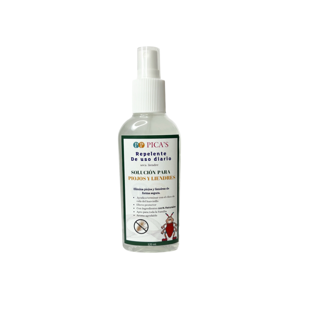 Nuestro repelente de uso diario es apto para todas las edades y su principal función es deshidratar el huevecillo del piojo para poder romper con su con el ciclo de vida. Además tiene efecto protector por lo que se recomienda aplicar todos los días de preferencia atrás de las orejas y en la nuca